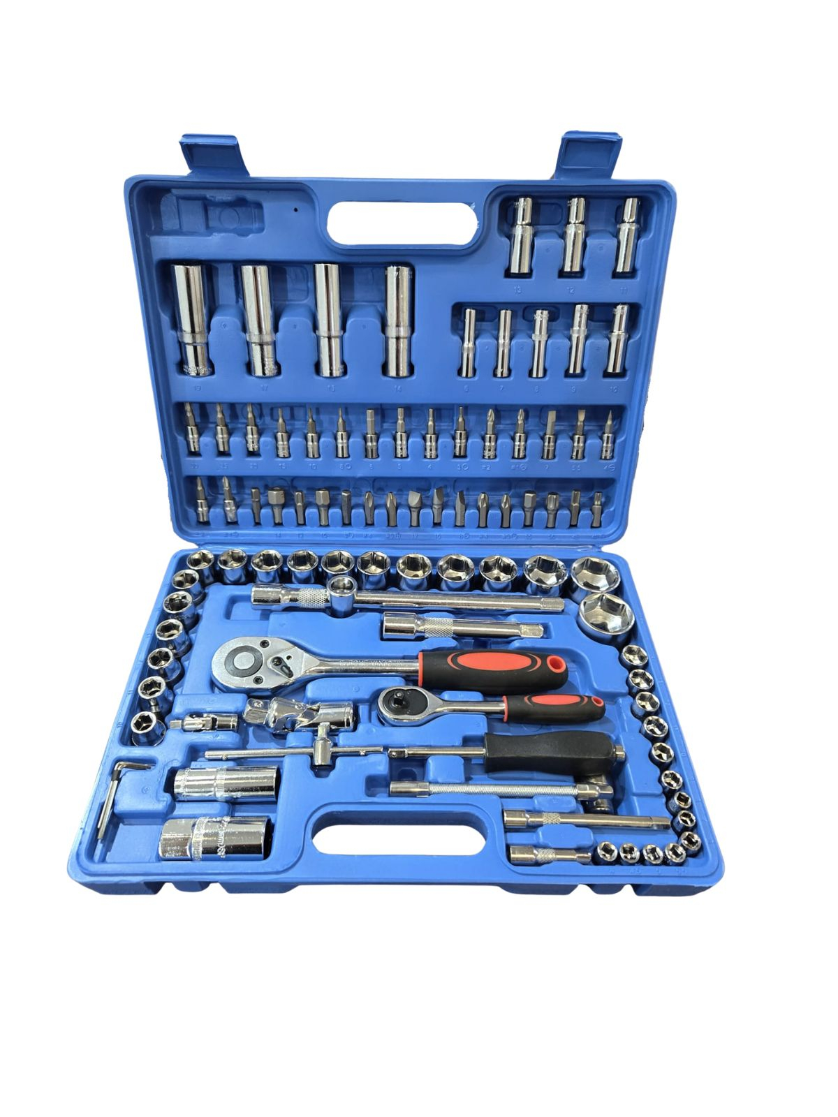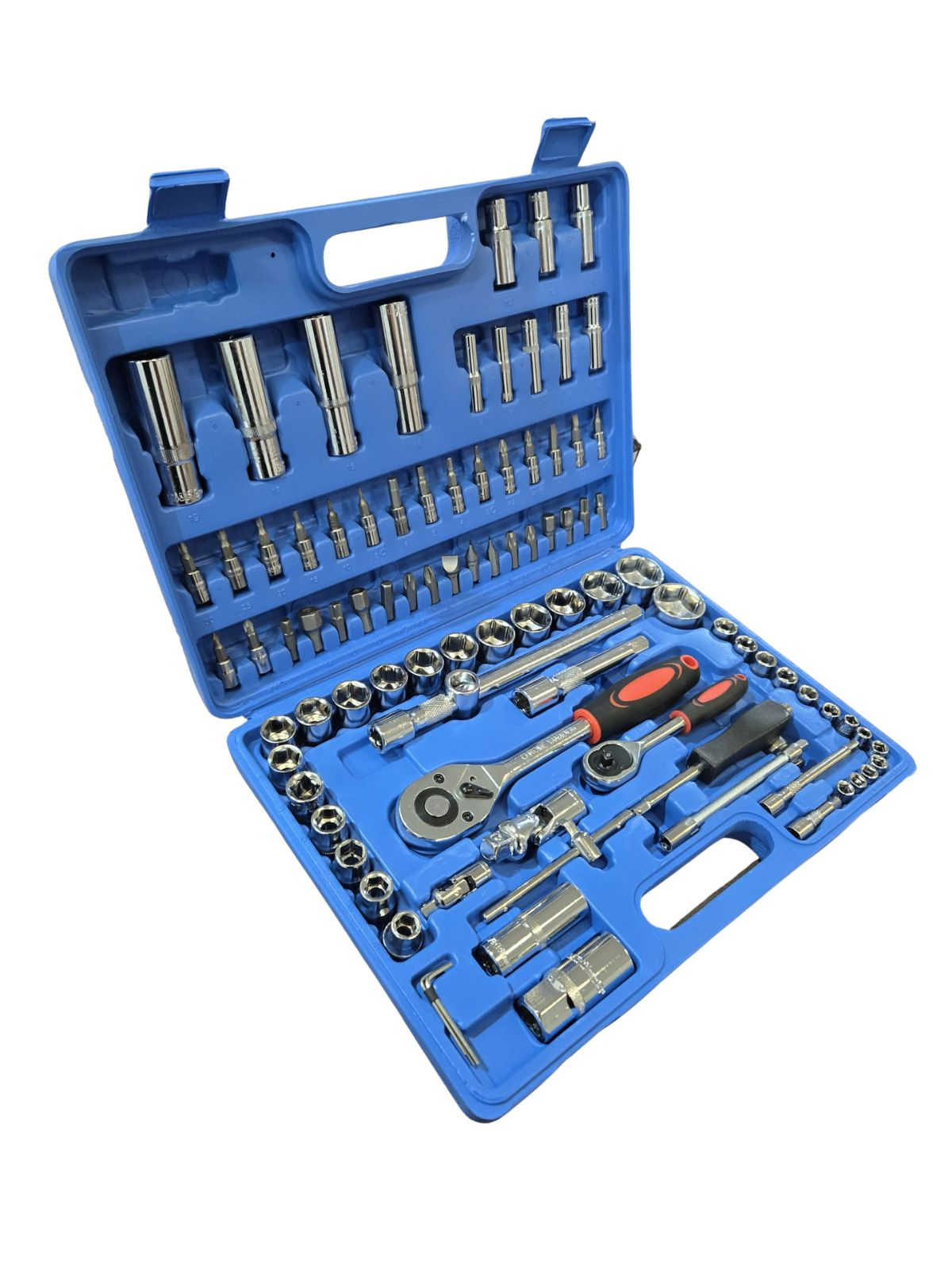 Set de scule de mână din 94 de piese fabricat din crom vanadiu și furnizat într-o cutie.