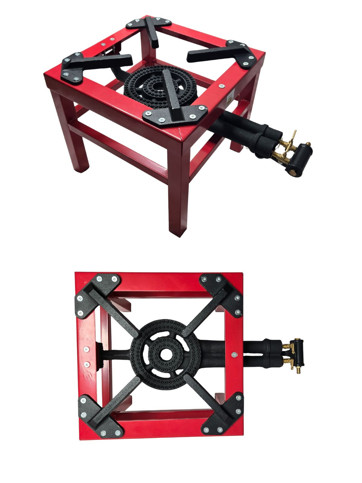 Arzător pe gaz cu 2 focuri, ideal pentru gătit sau încălzire în exterior, camping sau bucătării industriale. Focurile permit reglarea precisă a flăcării, iar construcția robustă asigură durabilitate și siguranță.