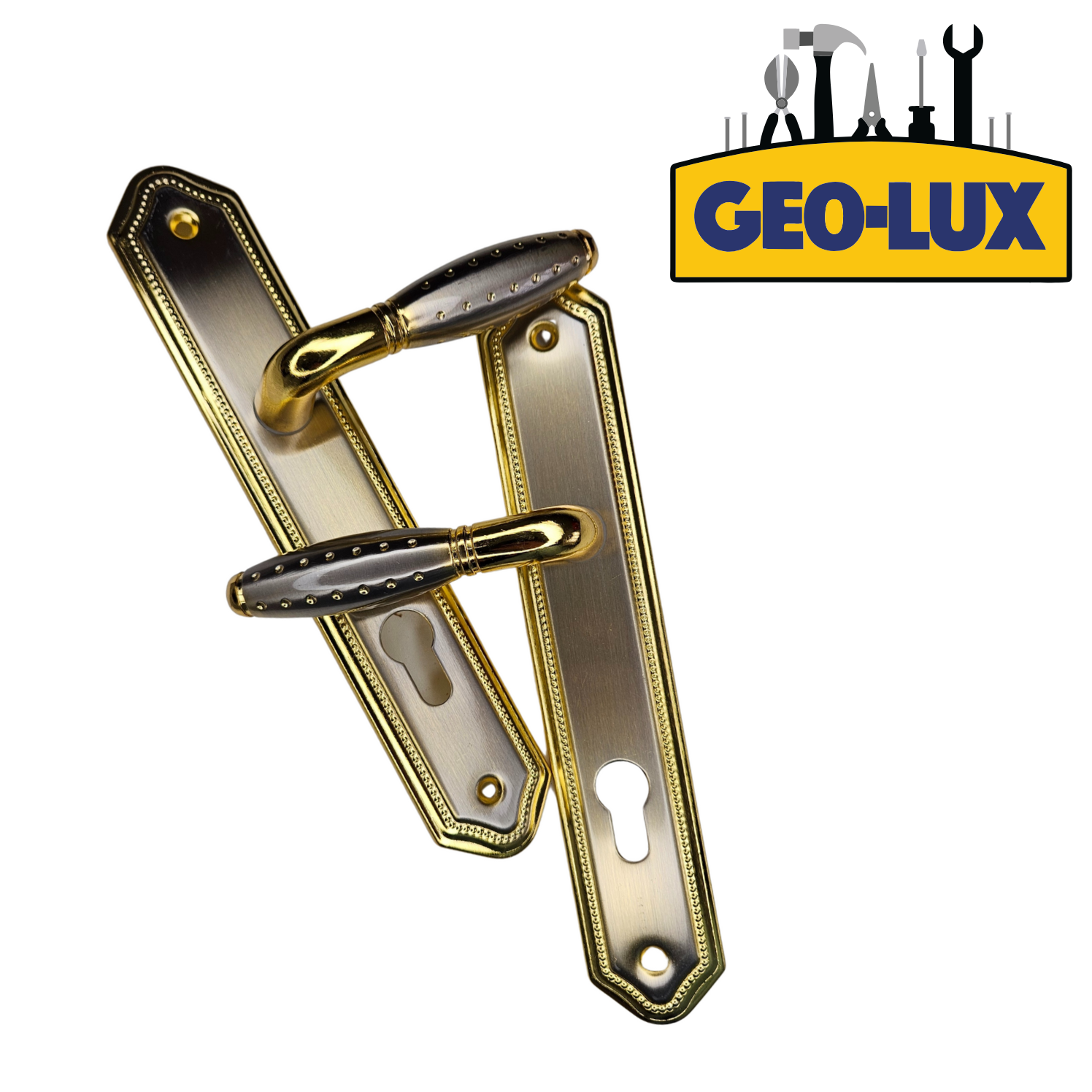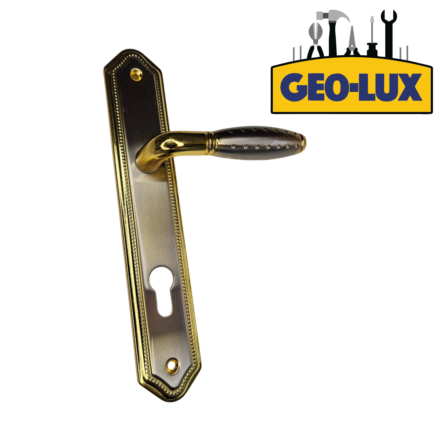 Mâner pentru ușă, complet cu broască integrată, oferind soluția ideală pentru închidere sigură și funcțională. Fabricat din materiale rezistente, asigură durabilitate și fiabilitate în utilizare. Potrivit pentru uși interioare și exterioare, ușor de montat și utilizat.